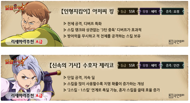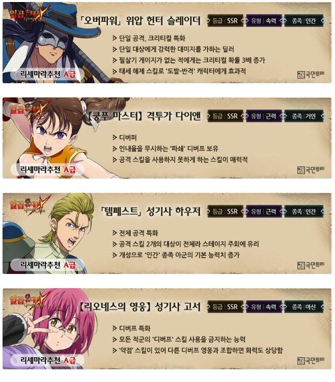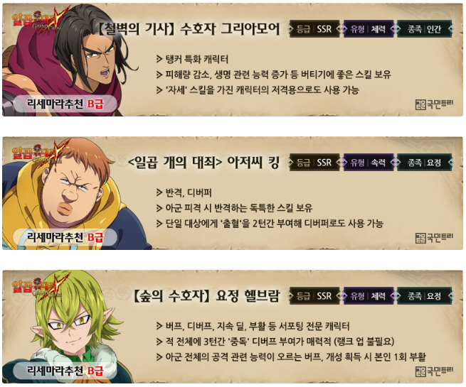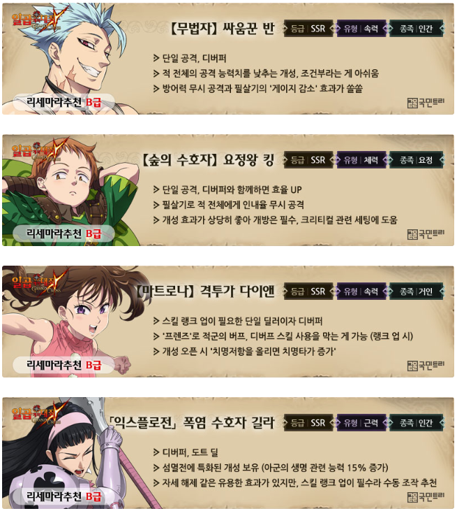 <게임> 일곱 개의 대죄 등급표 (리세)