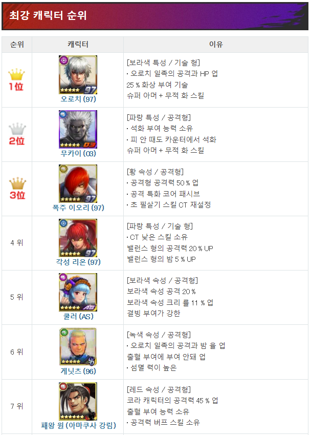 <게임> 킹 오브 파이터즈 올스타(KOF) 최강 캐릭터 등급표