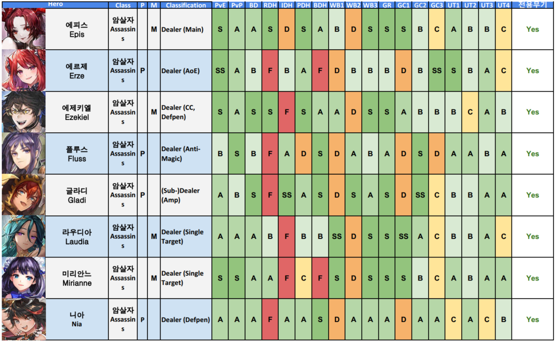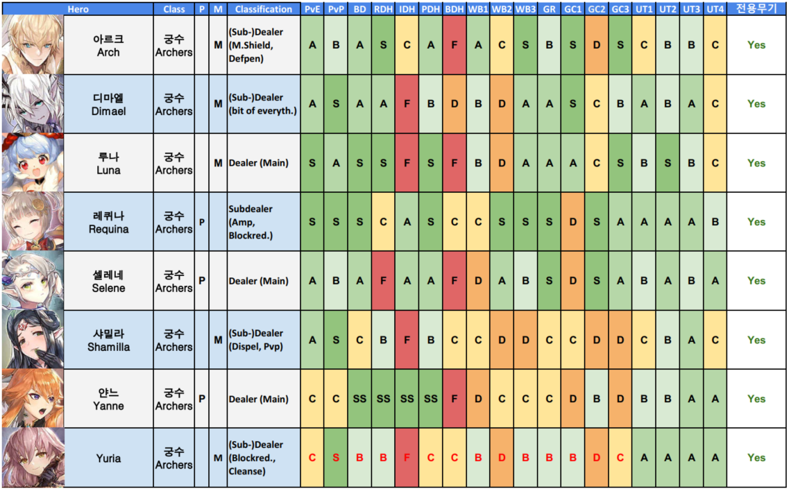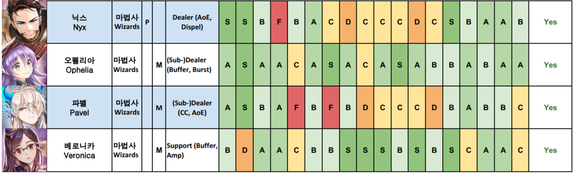 <게임>킹스레이드 등급표 영웅점수표 2019년7월