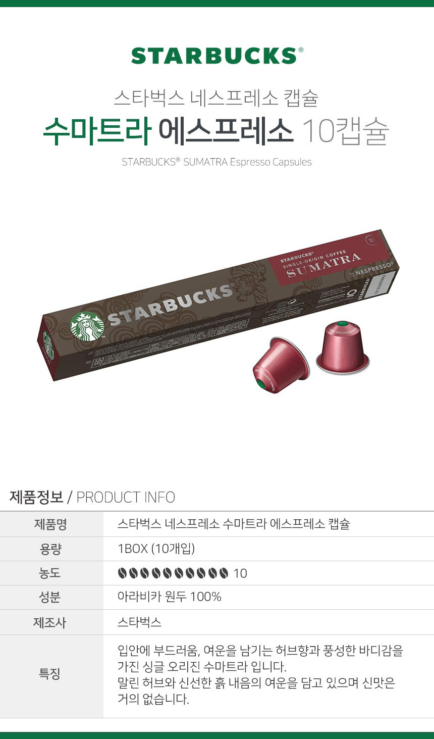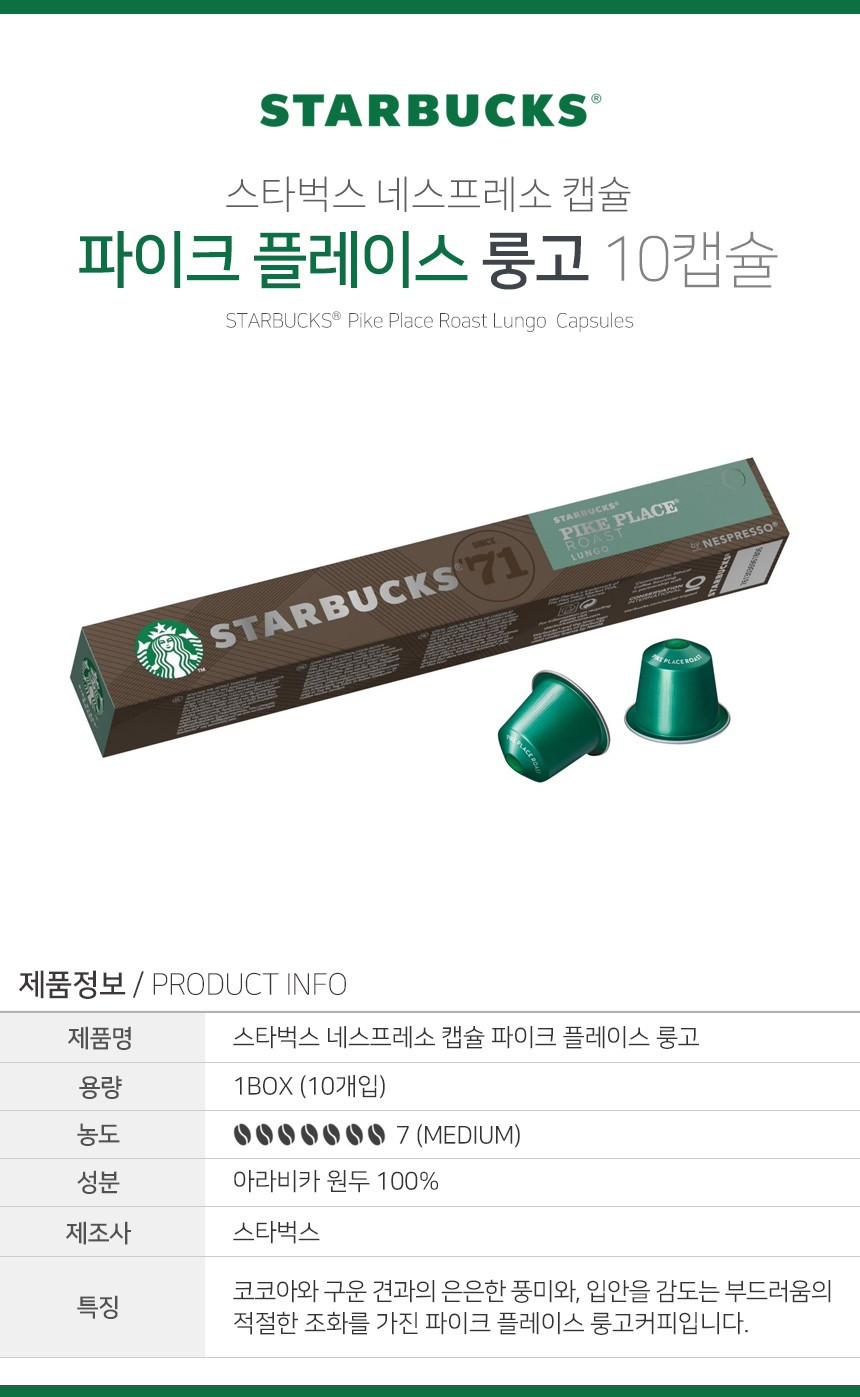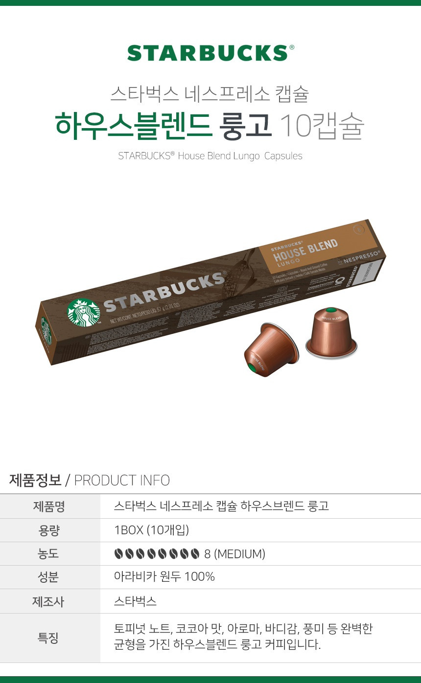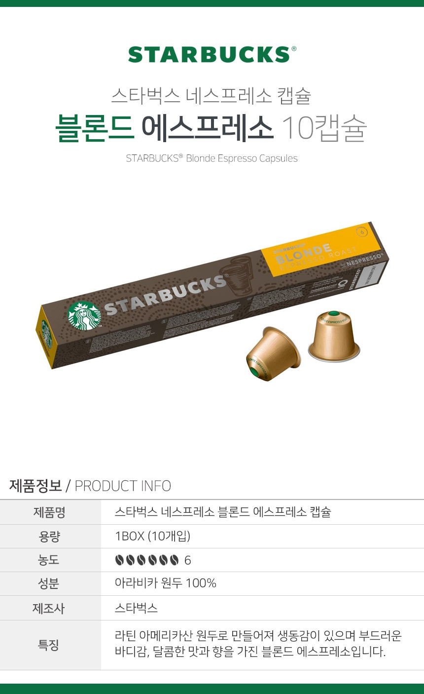 네스프레소 캡술 커피 중 스타벅스 브랜드 종류를 선택하는데 필요한 향과 맛 정보 입니다.