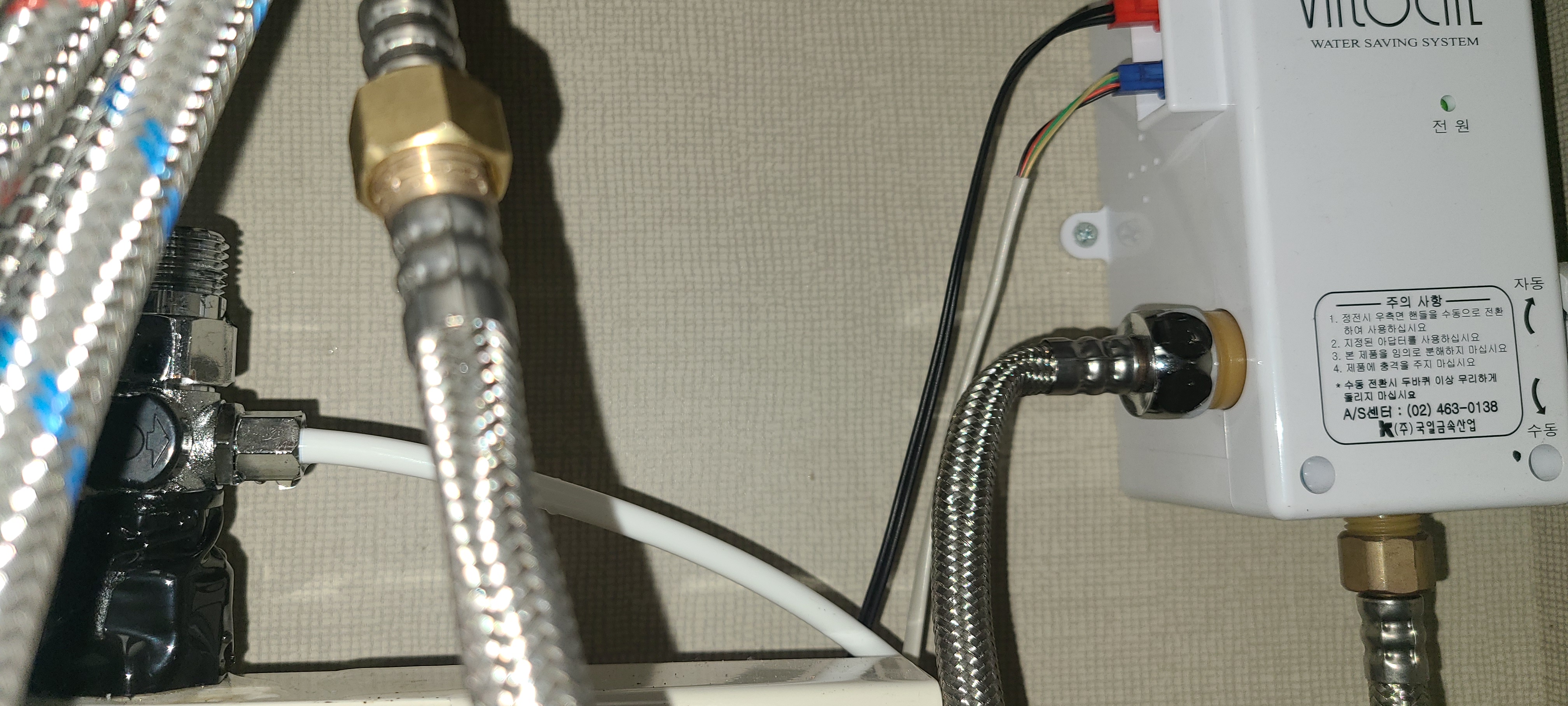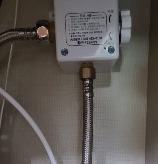 수전의 냉/온수 조합으로 나오는 토수 호수가 이 장치 입력으로 들어갑니다.