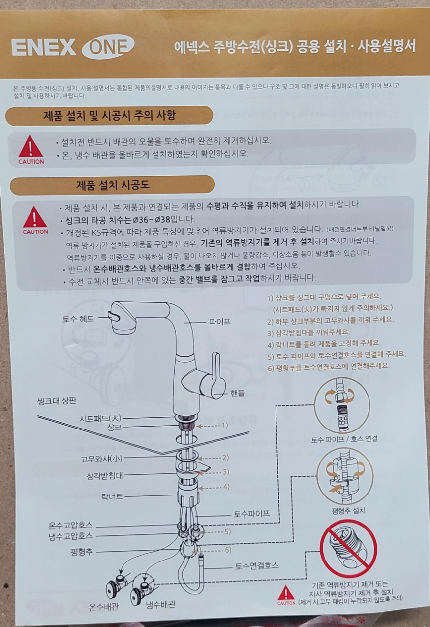 선택하게 된 것은 에넥스 제품의 수전입니다.