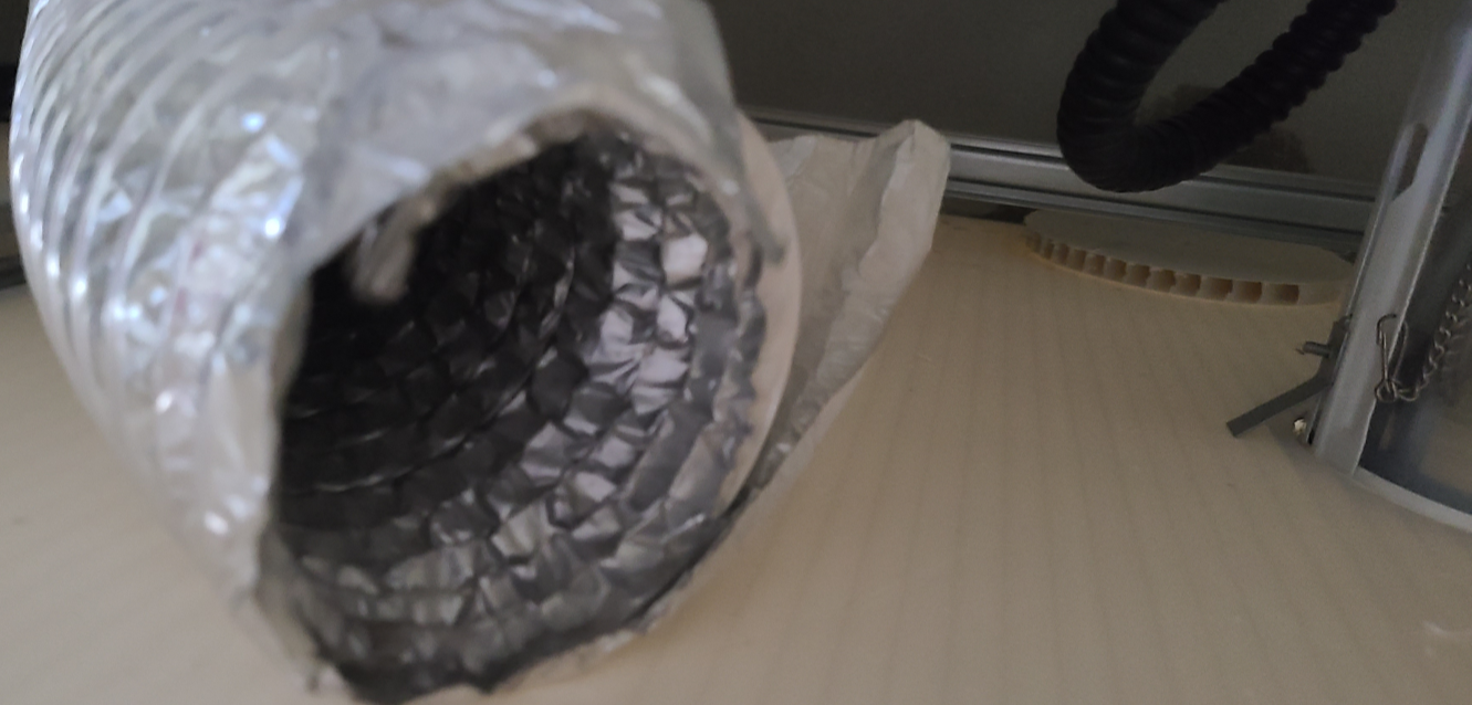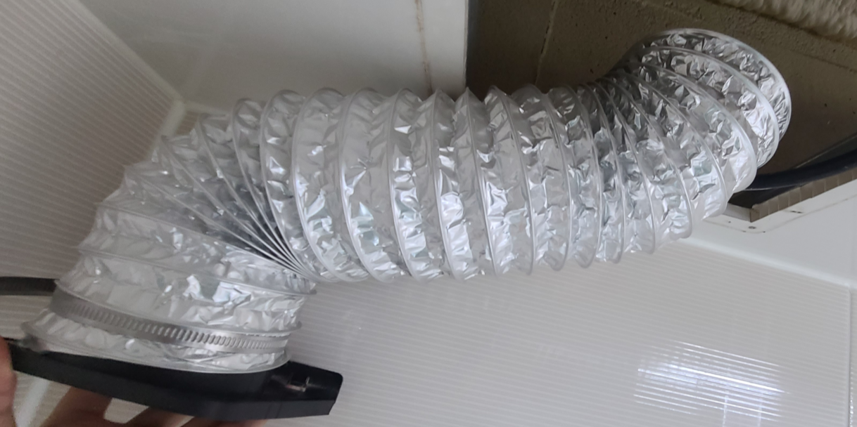 그런데 댐퍼는 정상이고 메인 배관에서 환풍기 댐퍼로 연결되는 배관 은색 주름관이 중간에 떨어져 있는 것을 찾았습니다.