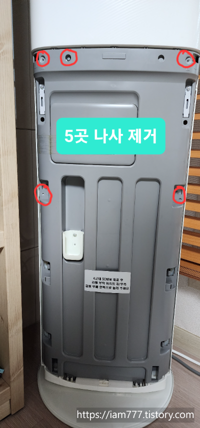 # 이제 의자나 사다리로 위쪽으로 올라가 아래와 같이 4곳의 나사를 제거합니다.