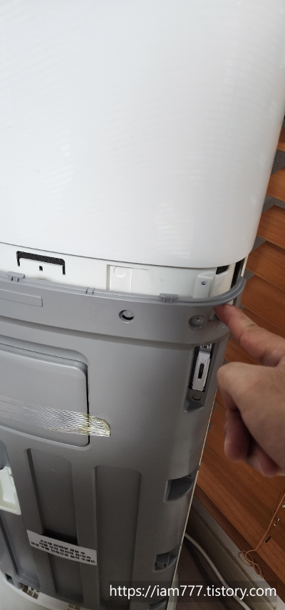 # 이제 에어콘 전면의 부분을 분리 시키기 위하여 아래와 같은 위치에 나사를 분리하여 줍니다.