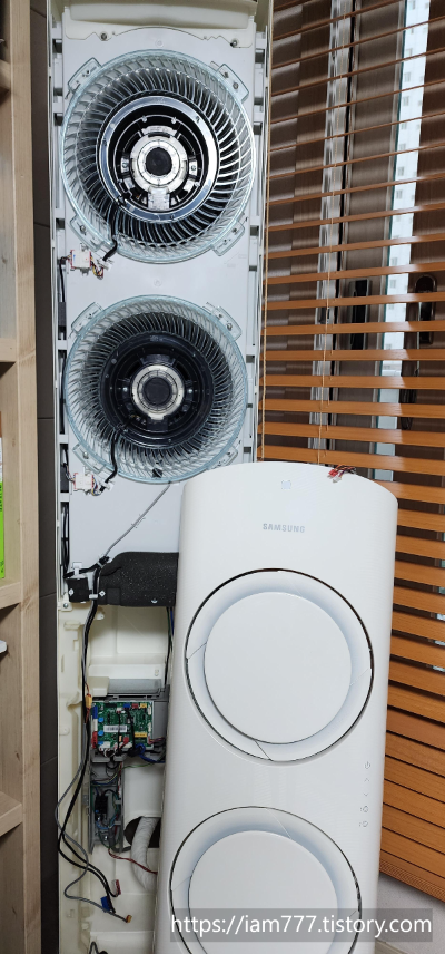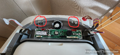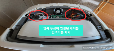 # 이제 바람나오는 흰색 부분과 연결된 케이블을 제거해야 됩니다.