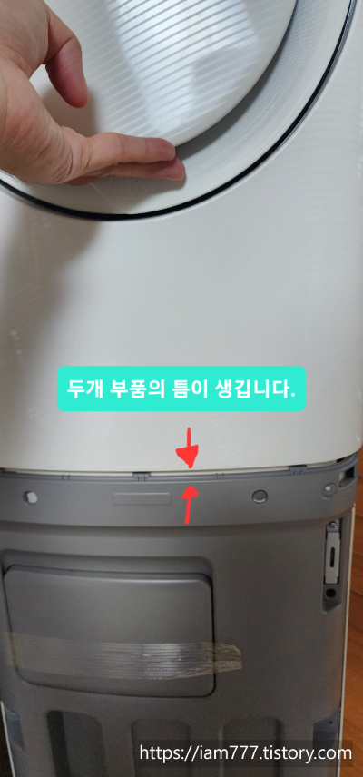 또는 손으로 바람나오는 부분을 위로 올리면 아래와 같이 틈이 생깁니다.