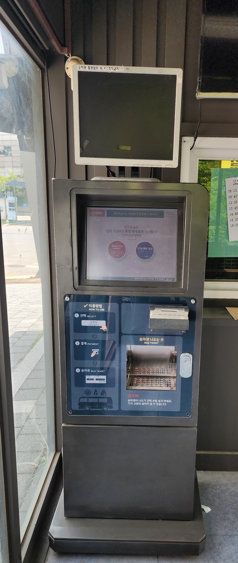 정류장에 키오스크가 있어 예매 및 티켓 출력 가능합니다.
