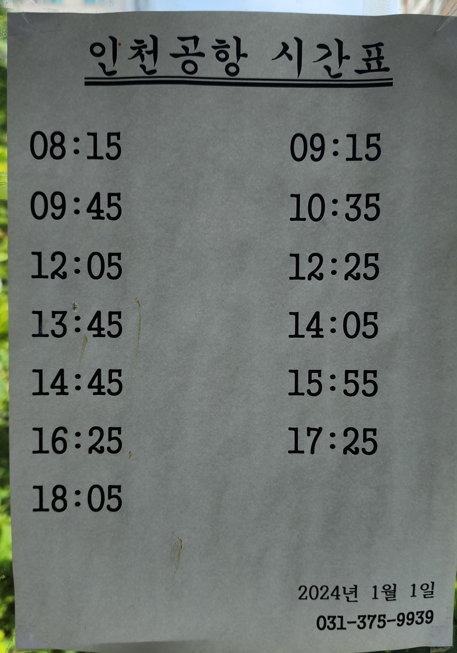 오산 세마대역 1번출구 앞에서 타는 인천공항행 버스 정보 입니다.